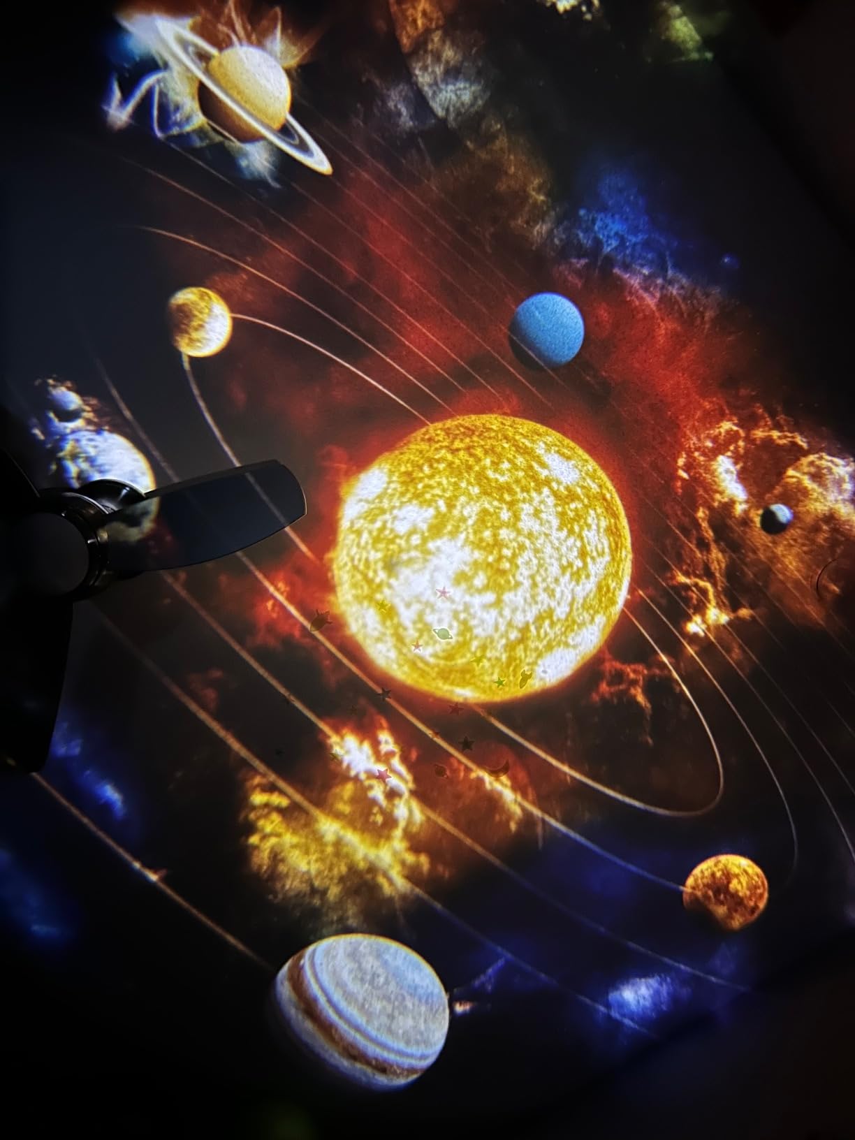 The projector is capable of illuminating a standard-sized room, projecting starry night effects onto walls and ceilings for a fully immersive experience.